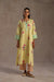 Elegant and easy, this charcoal blue kurta is adorned with delicate floral prints that stand out beautifully against the darker base. The relaxed silhouette is accented with contrast detailing along the neckline and striped sleeve cuffs, adding a refined touch of colour.
